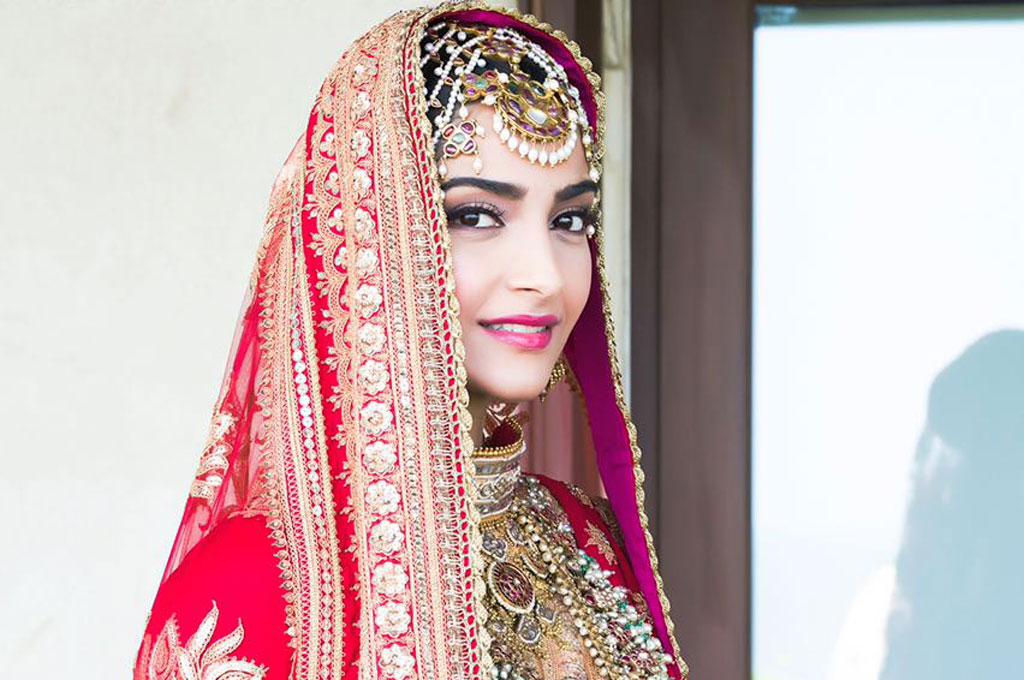 रेड और गोल्डन बौर्डर के लहंगे में सजी सोनम दुल्हन के लुक में बेहद खूबसूरत लग रही हैं. लहंगे के साथ उन्होंने चोकर नेकलेस और पर्ल बीडेड रानी हार पहन रखा है.